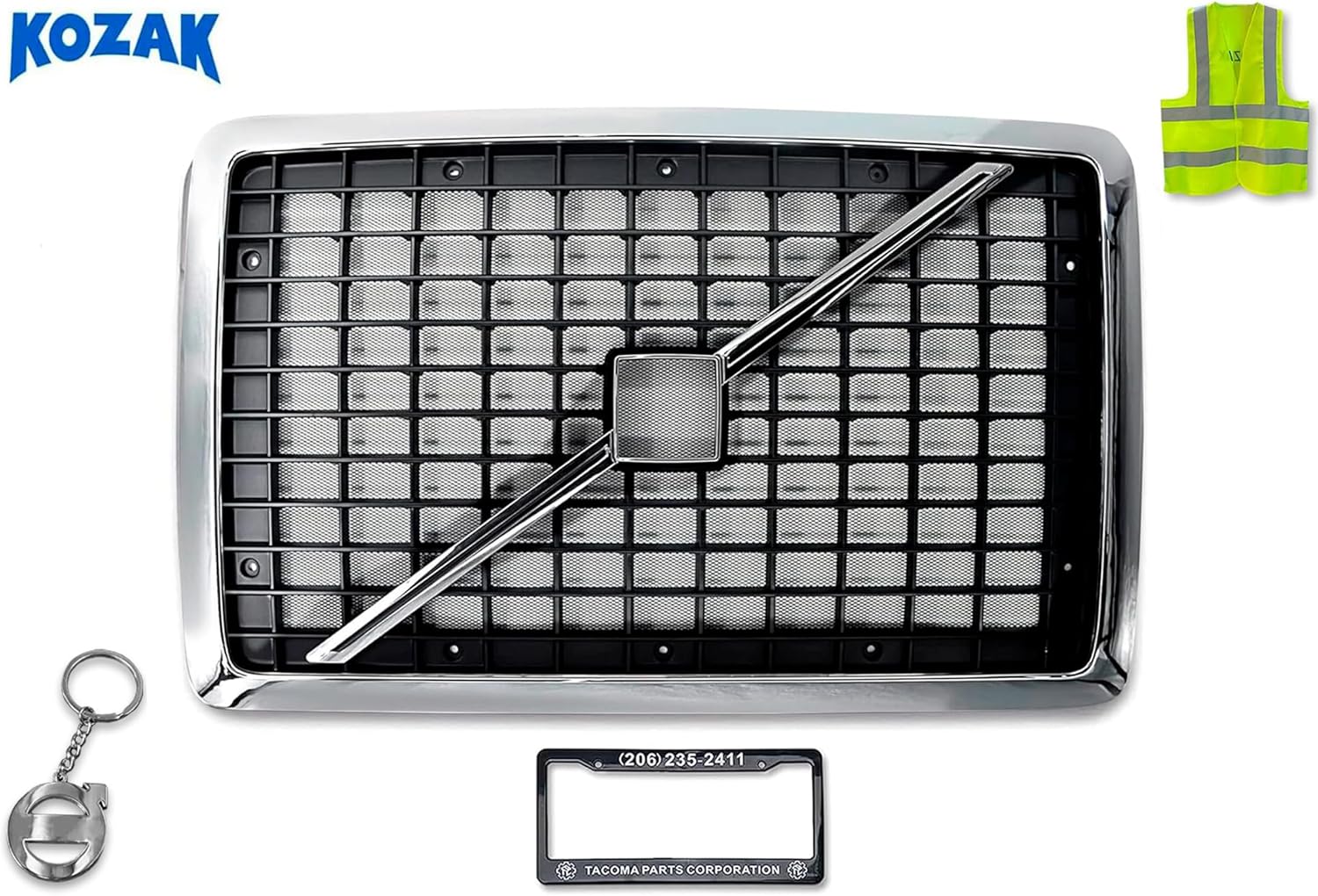 Compatible with Volvo VNL 2004-2017, Chrome Front Grille with Bug Net Screen, perfect for truck owners looking to elevate their vehicle's protection and style. This grille not only improves your truck's front aesthetics with its chrome finish but also features a built-in bug net to safeguard critical engine components from debris and insects, ensuring optimal performance. The logo with stripe, and keychain add a touch of personal flair to your vehicle, and the reflective vest keeps you visible and safe in emergency situations.The item is for commercial or warehouse delivery ONLY. Valid phone number and Commercial address should be provided for delivery. Failure to do so may result in delayed shipment. Seller is not liable for any expense associated with failure to provide contact information on Buyers behalf. Seller reserves the right to hold the shipment until the contact with Buyer has been established to cleat all shipping details. Please make sure to provide your full and detailed shipping address information! Contact us if you want to pick up the item or if you want to know more about delivery options in Washington